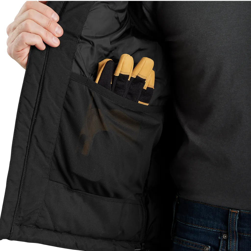 Χαρακτηριστικά: Σύνθεση από 100% νάιλον, DWR Nylon, στα 4.5 oz/yd² – 153 gsm. Εσωτερική επένδυση από 100% πολυεστέρα, ελαφρύ σέρπα, το αμάνικο γιλέκο είναι σε χαλαρή εφαρμογή, Rain Defender® με ανθεκτικό υδατοαπωθητικό φινίρισμα, Wind Fighter® – ανθεκτικό στον αέρα. Φέρει δύο τσέπες στο στήθος με πτερύγια και κούμπωμα, κρυφή τσέπη με φερμουάρ στην αριστερή πλευρά, δύο κάτω μπροστινές τσέπες που κλείνουν με φερμουάρ και μεγάλη εσωτερική βοηθητική τσέπη, κεντρικό κλείσιμο φερμουάρ σε όλο το μήκος, με εσωτερικό πτερύγιο καταιγίδας και προστατευτικό πηγουνιού. Το λογότυπο της Carhartt ραμμένο στην τσέπη.