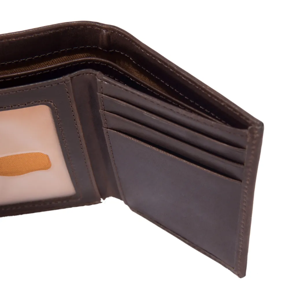 Το Δερμάτινο Πορτοφόλι Σκούρο Καφέ της Carhartt είναι κατασκευασμένο από ανθεκτικό δέρμα, με ανάγλυφο σήμα Carhartt στο μπροστινό μέρος. Διαχρονικό και πρακτικό για να καλύπτει όλες τις ανάγκες σας.