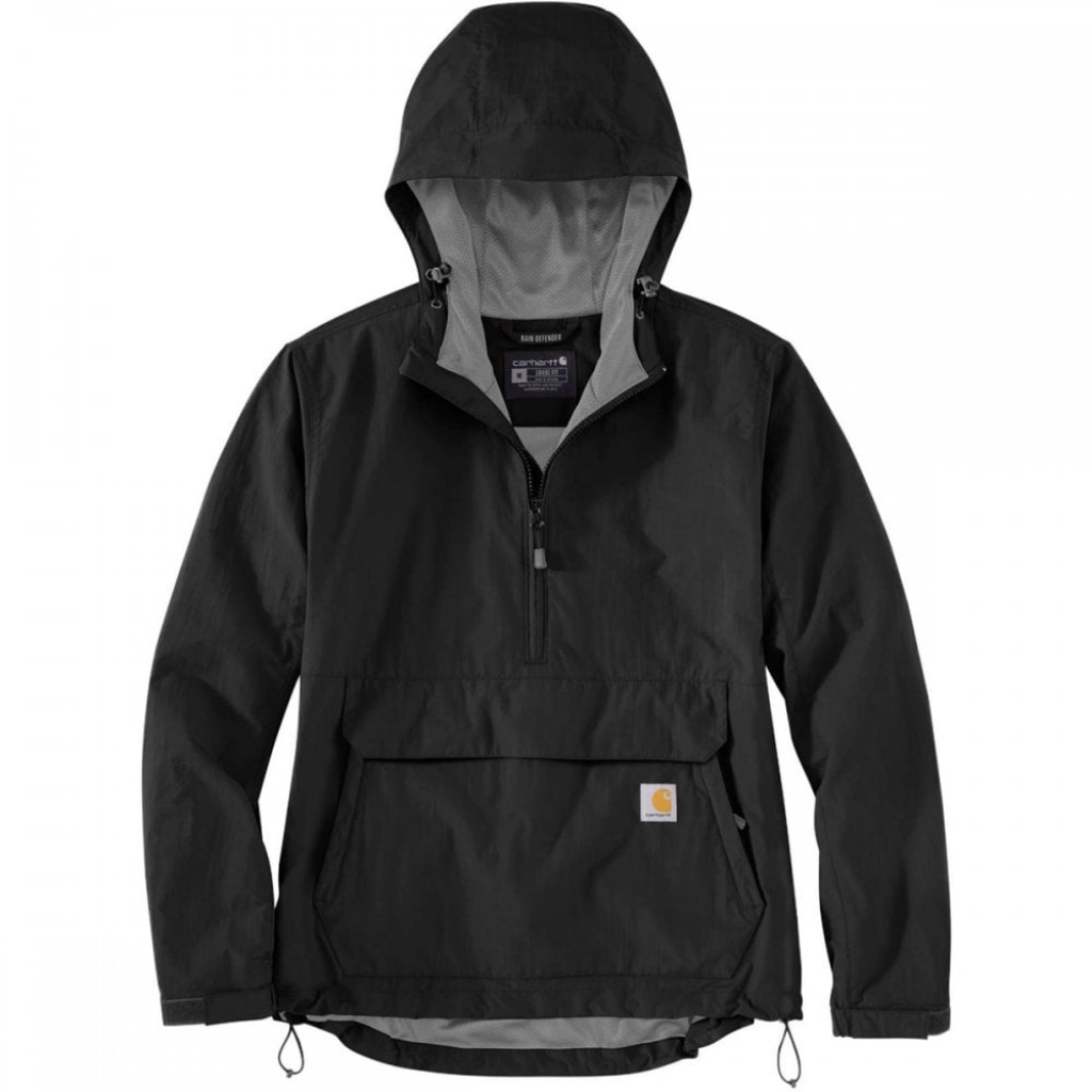 Χαρακτηριστικά: Σύνθεση από 100% νάιλον με Rain Defender DWR για να αποβάλλει την υγρασία και τεχνολογία Wind Fighter® για να είναι αδιπέραστο από τον άνεμο, με εσωτερικό πολυεστερικό πλέγμα για να σας παρέχει διαπνοή. Το μπουφάν έχει μισό φερμουάρ στο μπροστινό τμήμα, ρυθμιζόμενη κουκούλα, τσέπη τύπου καγκουρό για την προστασία των χεριών σας με κλείσιμο velcro, Anorak για να διπλώνει και να συσκευάζεται σε πλαϊνή τσέπη έτσι ώστε να μεταφέρετε εύκολα και πρακτικά. Τριπλές ραφές στα σημεία τριβής, το λογότυπο της carhartt ραμμένο στο πάνω τμήμα της τσέπης.